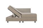 De Mörgenn Opberg Boxspring Beige 140×210 biedt die extra tien centimeter lengte waar je echt iets aan hebt als je langer bent. Met 140 centimeter breed past dit bed prima in kleinere kamers, terwijl je toch comfortabel kunt liggen zonder dat je voeten over de rand bungelen. Beige geeft een warme, neutrale uitstraling die makkelijk te combineren valt met vrijwel elke inrichtingsstijl.